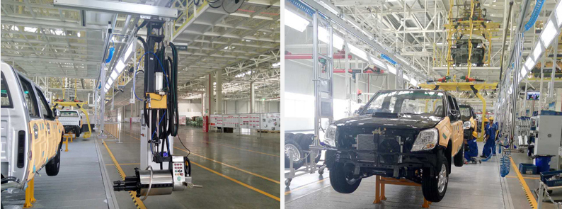 北汽福田汽车股份有限公司在异地扩建皮卡和SUV生产线(佛山),为总装车间技术改造项目。本项目为我公司总承包项目,包括内饰线、底盘线、综合线、工艺吊架及照明、货箱分装台,仪表分装台、后桥分装台、尾气抽排室、KPK、行车、工艺二次管线、全车供电系统、全系统集成。同时,包括现场管理、项目协调等管理工作。主要参数:产品:萨普、P201、U201。标准年工作时基250天,双班工作制,每班8h,生产纲领80000辆/年